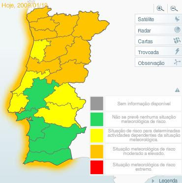 Em toda a orla costeira de Portugal continental prevê-se ondulação no mar entre os cinco e os sete metros, estando nestes casos accionado o aviso Laranja.